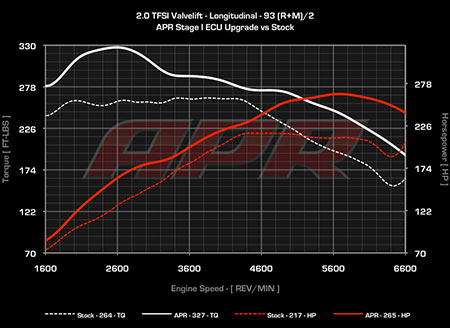 APR is pleased to present the ultimate ECU Upgrade for the 2.0 TFSI Valve Lift engine. After months of long nights and many hours of testing, development and more testing, we are pleased to offer you an ECU recalibration that is second to none. APR's extensive research and development provides you with a powerful ECU Upgrade with no loss of drivability or reliability. Expect huge increases in low-end torque, improved throttle response and a smoother, more powerful top end.