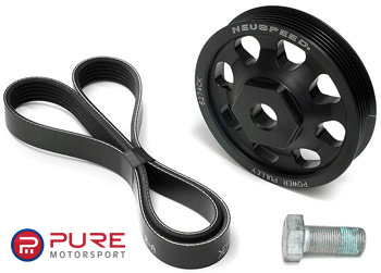 Your car's alternator and A/C is powered by a belt connected back to the crankshaft pulley. Spinning this pulley draws precious horsepower from your engine. NEUSPEED's powertrain engineer, using sophisticated CAD software, performed a mass properties analysis of the crank pulley. The result is reduced parasitic drag on the engine and increased horsepower. This kit includes a new under-drive crankshaft pulley and shorter belt.