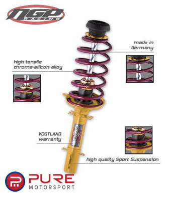 Sport Suspension Kits - We use our tried and trusted sport springs with progressive tuning and only the best quality performance shock absorbers in our VOGTLAND complete kits. Brake dives and body roll during cornering are significantly reduced. All complete kits respond immediately to your input and provide you with a safe and responsive vehicle. Look forward to an excellent road holding, sportive image and a much more dynamic power.