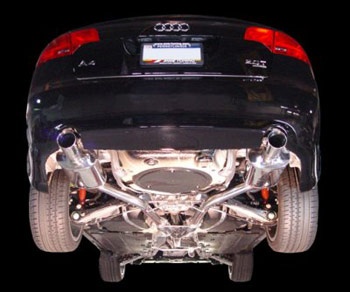 Each system is mandrel bent T304 stainless steel, and the manual transmission model is a full catalytic converter back design. Since the catalytic converter resides in the engine bay with the A4 1.8T, an exhaust system is only considered a catalytic converter back design if the downpipe that comes off the catalytic converter is also part of the system. Not only does our manual transmission system include a downpipe, but it is a whopping 2.5" in diameter, guaranteeing maximum flow even with big turbo kits.