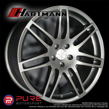 Hartmann B7 HRS4 - 252-MA cast replica wheels are a split 7 spoke wheel finished in an anthracite color with machined spokes and lip with a clearcoat. The B7 HRS4 - 252-MA accepts an OEM Audi centercap, part #4B0 601 170 A 7ZJ. The Hartmann B7 HRS4 - 252-MA replica wheel has a 5x112 bolt pattern (PCD) and uses OEM Audi 14x1.5mm ball seat lug bolts.