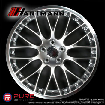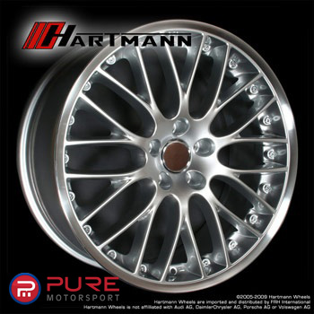 Hartmann Euromesh 3 wheels are a 10 spoke mesh style 2-piece look wheel finished in a Hyper Silver color with a clearcoat. The Euromesh 3 accepts an OEM Audi centercap, part #4B0 601 170 A 7ZJ. The Hartmann Euromesh 3 wheel has a 5x112 bolt pattern (PCD) and uses the OEM Audi 14x1.5mm ball seat lug bolts.