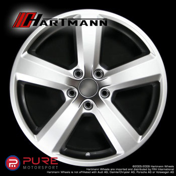 The Hartmann HRS6 - 172 HC replica wheels are a 5 spoke wheel finished in a Hyper Silver color with a clearcoat. The HRS6 - 172 accepts an OEM Audi center cap, part #4B0 601 170 7ZJ. The Hartmann HRS6 - 172 HC replica wheel has a 5x112 bolt pattern (PCD) and uses OEM Audi 14x1.5mm ball seat lug bolts.