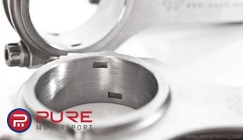 One of the hallmarks of a high quality connecting rod is its strength to weight ratio. Anyone can create an extremely strong rod out of a huge chunk of steel. Creating one with a reasonable weight that works well in today's high rpm european applications, and holds up to a lifetime of torture is another story. In order to create this balance of strength and light weight, an H beam design is utlized. The design is validated and optimized using modern CAD drafting and FEA analysis techniques. These techniques ensure the rod is as light and strong as possible. The material specification and treatment is equally important to producing a quality connecting rod with a high strength to weight ratio. Our steel rods feature 4340 Chrome Moly steel, formed into shape using a 2 piece forging for the highest possible fatigue life. The material is multi-stage heat treated to ensure the highest possible fatigue strength as well as good dimensional stability. This feature ensures that our big ends stay round for a lifetime of bearing trouble free service. Following this pattern of high quality, ARP 2000 rod bolts are standard in all of our applications, while they are an upgrade at additional cost in many of our competitors.