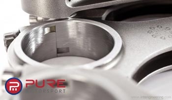 One of the hallmarks of a high quality connecting rod is its strength to weight ratio. Anyone can create an extremely strong rod out of a huge chunk of steel. Creating one with a reasonable weight that works well in today's high rpm european applications, and holds up to a lifetime of torture is another story. In order to create this balance of strength and light weight, an H beam design is utlized. The design is validated and optimized using modern CAD drafting and FEA analysis techniques. These techniques ensure the rod is as light and strong as possible. The material specification and treatment is equally important to producing a quality connecting rod with a high strength to weight ratio. Our steel rods feature 4340 Chrome Moly steel, formed into shape using a 2 piece forging for the highest possible fatigue life. The material is multi-stage heat treated to ensure the highest possible fatigue strength as well as good dimensional stability. This feature ensures that our big ends stay round for a lifetime of bearing trouble free service. Following this pattern of high quality, ARP 2000 rod bolts are standard in all of our applications, while they are an upgrade at additional cost in many of our competitors.