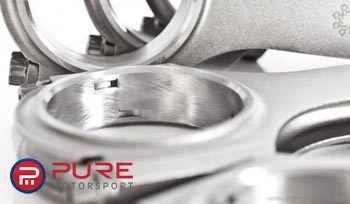 One of the hallmarks of a high quality connecting rod is its strength to weight ratio. Anyone can create an extremely strong rod out of a huge chunk of steel. Creating one with a reasonable weight that works well in today's high rpm european applications, and holds up to a lifetime of torture is another story. In order to create this balance of strength and light weight, an H beam design is utlized. The design is validated and optimized using modern CAD drafting and FEA analysis techniques. These techniques ensure the rod is as light and strong as possible. The material specification and treatment is equally important to producing a quality connecting rod with a high strength to weight ratio. Our steel rods feature 4340 Chrome Moly steel, formed into shape using a 2 piece forging for the highest possible fatigue life. The material is multi-stage heat treated to ensure the highest possible fatigue strength as well as good dimensional stability. This feature ensures that our big ends stay round for a lifetime of bearing trouble free service. Following this pattern of high quality, ARP 2000 rod bolts are standard in all of our applications, while they are an upgrade at additional cost in many of our competitors.